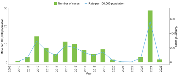 | Year | Number of cases | Rate per 100,000 population |