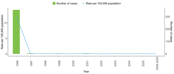 In Wales, the number of confirmed cases of rubella is low with nine cases recorded between 2000 and 2005; and no cases confirmed since this time.